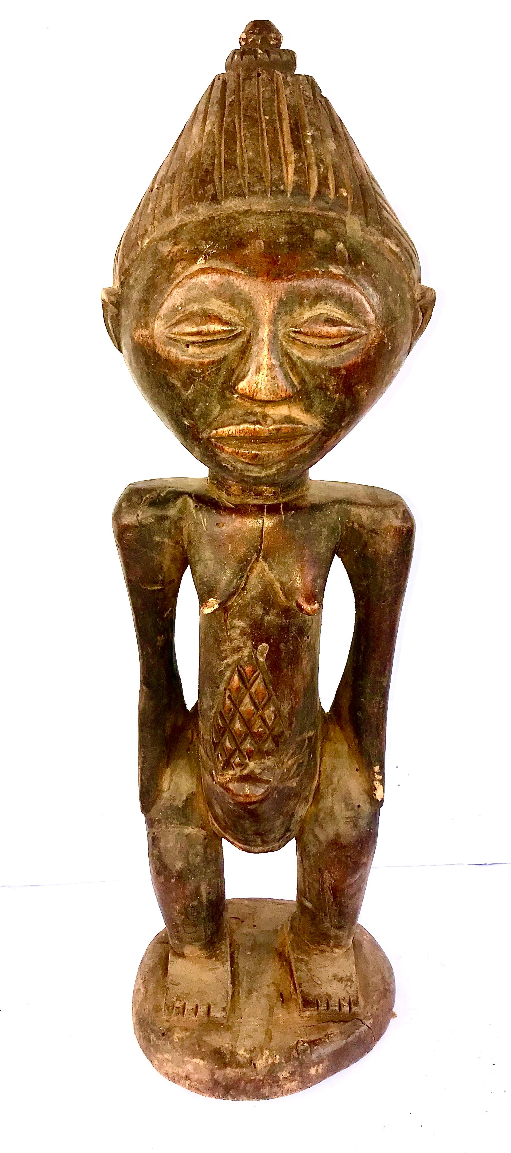 Usage: This figure represents a pregnant woman showing beauty scars on her belly. It has being used during protection - and healing rituals.