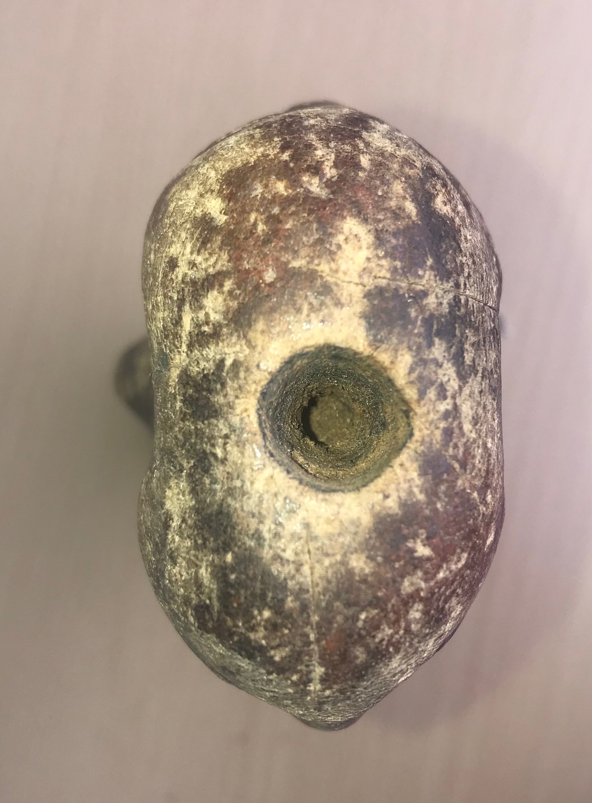 Comment: The whole on the top of the figure head was used to blow in specific herbs to cleanse the body.