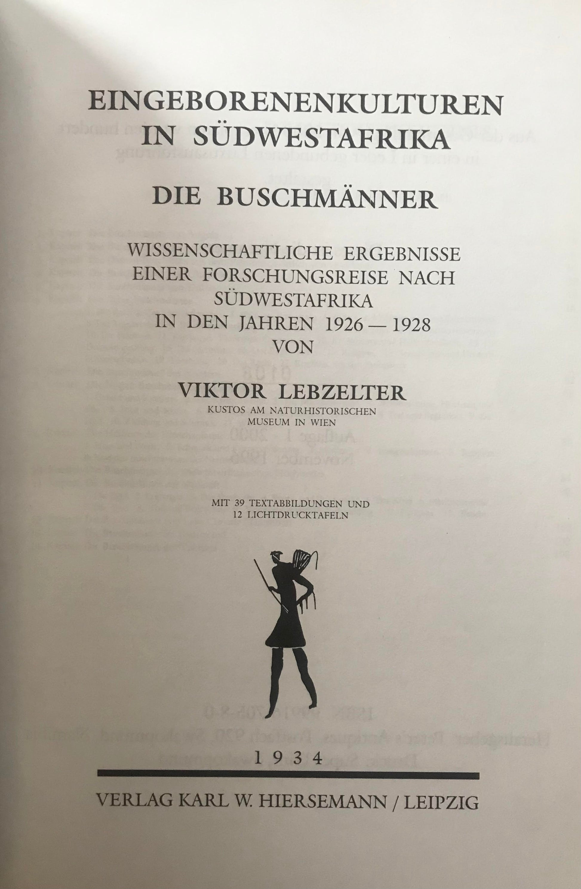 Eingeborenenkulturen von Südwestafrika - Die Buschmänner - Viktor Lebzelter 1934, Nachdruck Peter's Antiques November 1996. Die Bücher sind bis 2000 nummeriert.