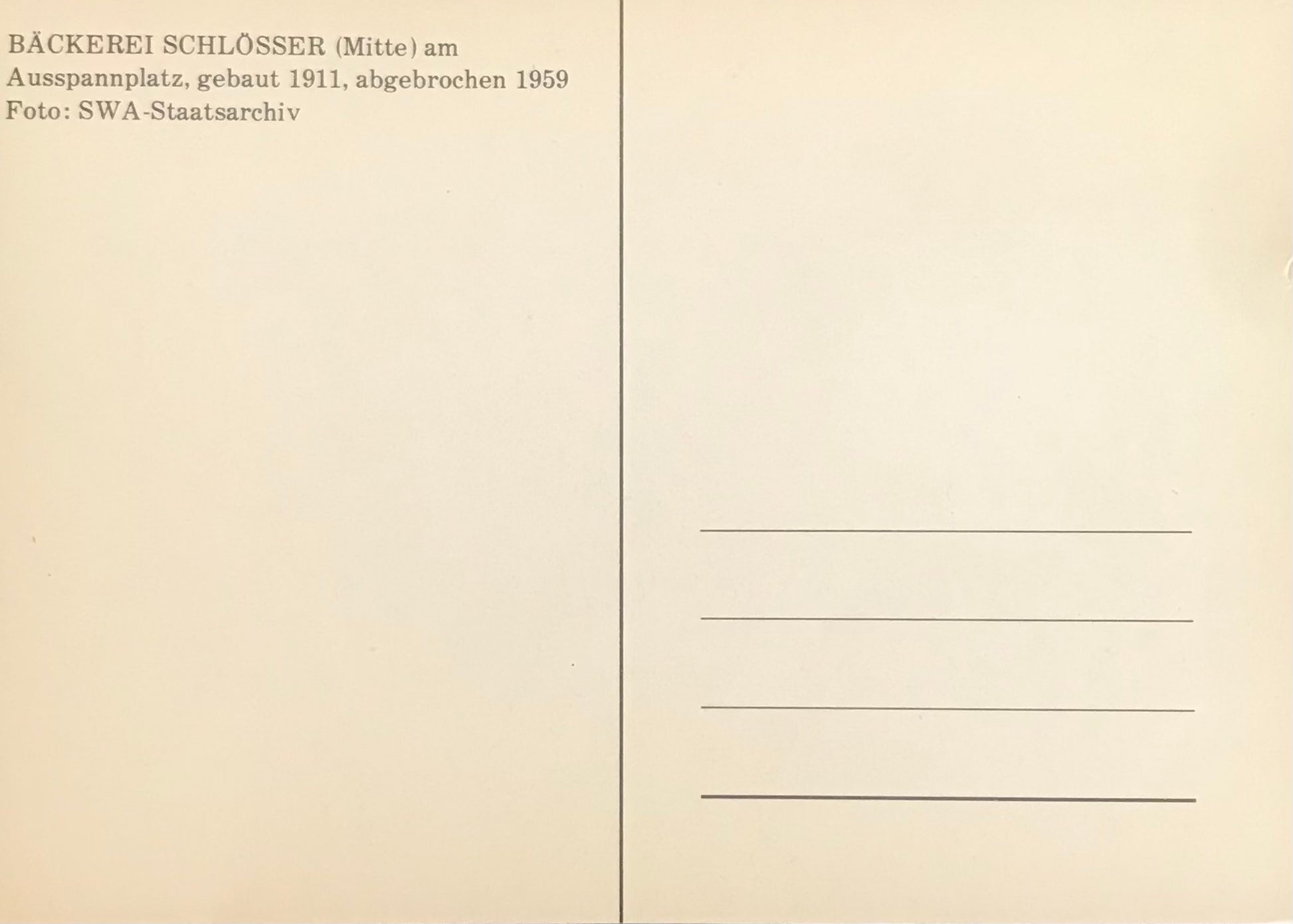Bäckerei Schlösser (Mitte) am Ausspannplatz, Windhuk, DSWA - gebaut 1911, abgebrochen 1959, alter Nachdruck