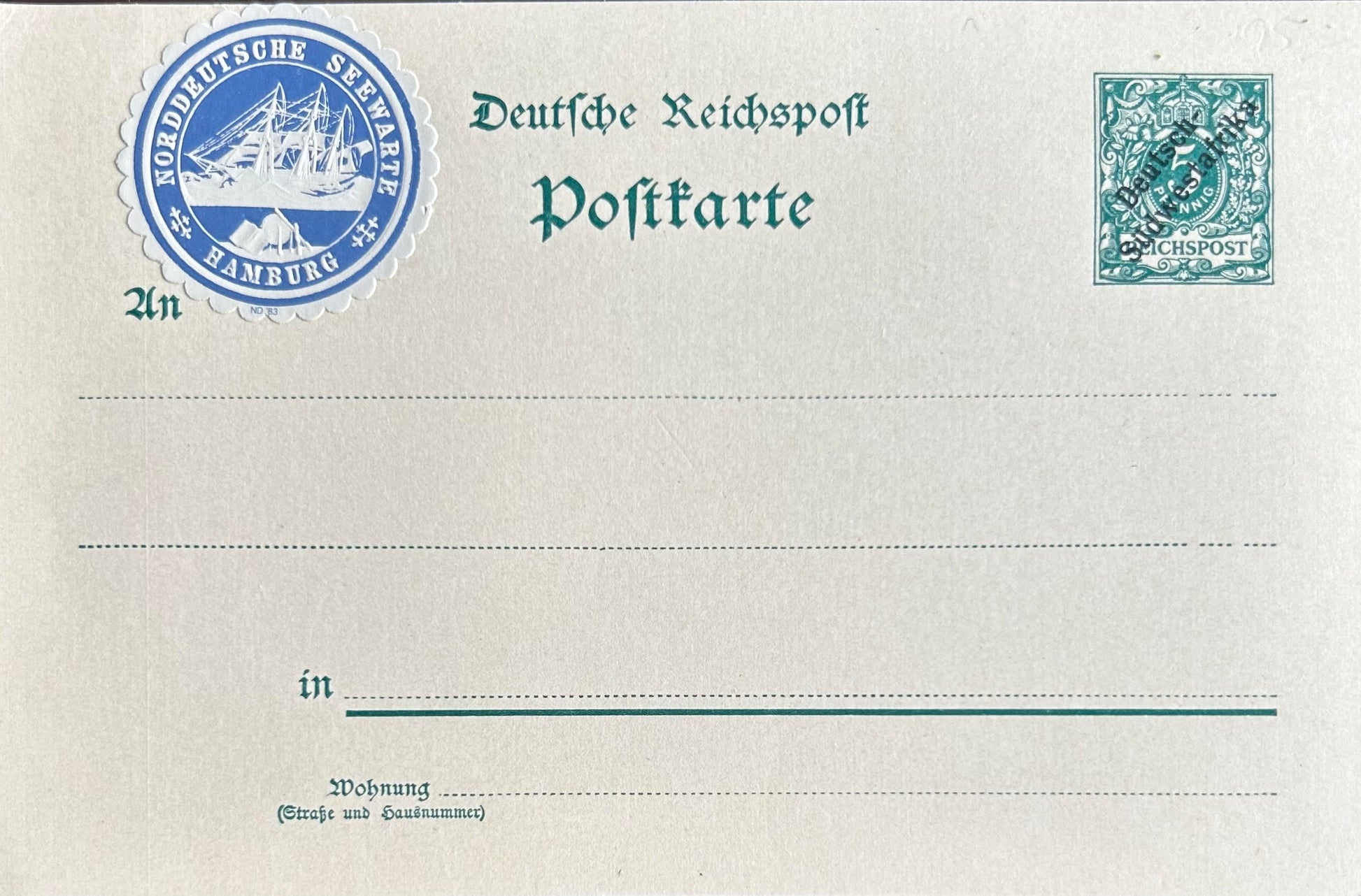 DSWA - Deutsche Reichspost Postkarte - unzirkuliert - mit Marke der Norddeutsche Seewarte, Hamburg