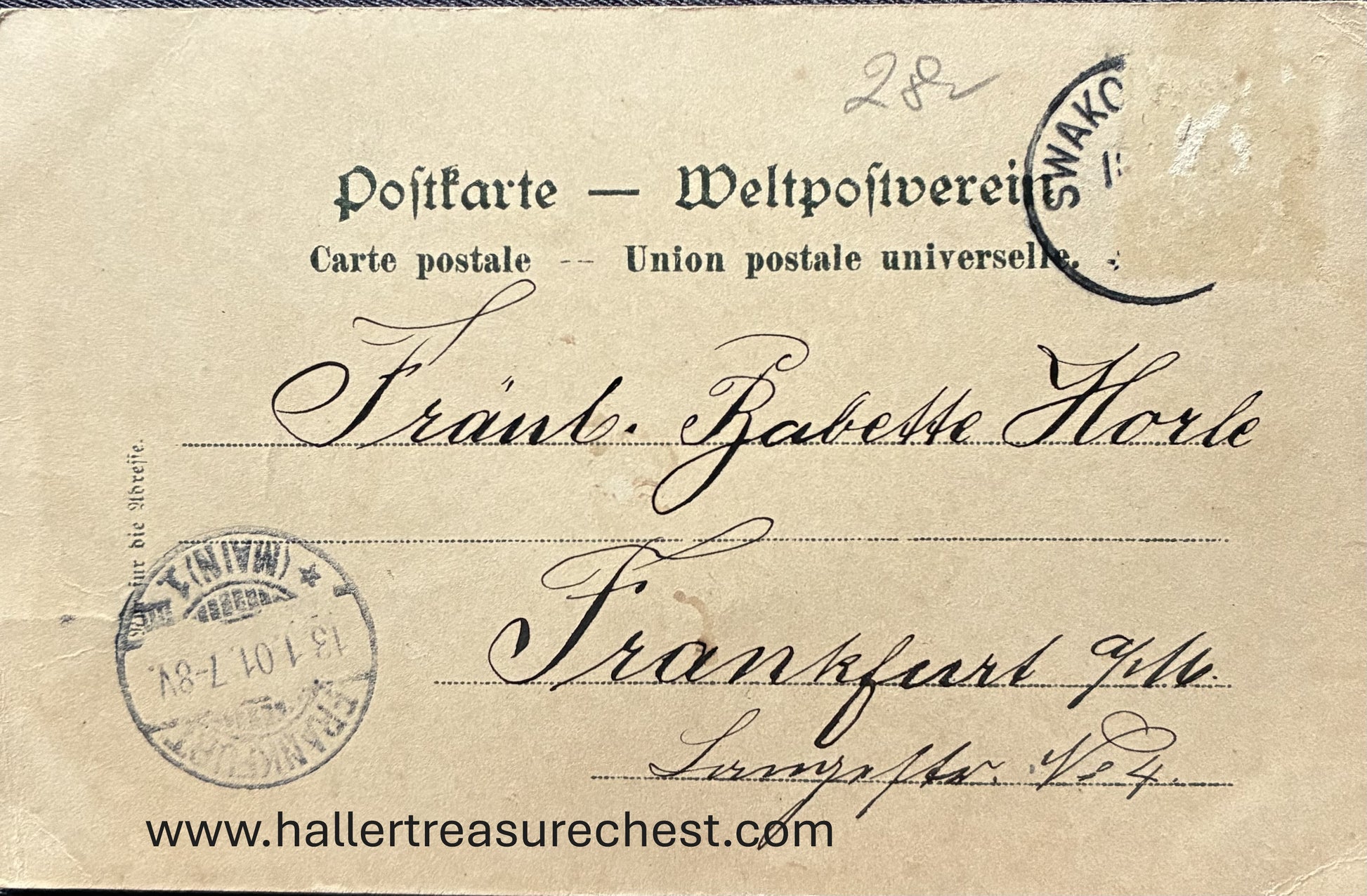 DSWA - Gruss - 13.Januar 1901 - geschriebene Postkarte mit Swakopmund, DSWA und Frankfurt Poststempel